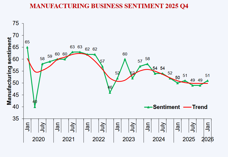 Kopint-Tárki’s economic confidence survey, the Manufacturing Survey Results (Konjunktúrateszt in Hungarian) is conducted four times a year among manufacturing companies active in Hungary. The sample includes small, medium and large companies. The report contains findings on company perceptions on current economic situation and forthcoming developments, trends in production, inventories, domestic and export sales, capacity utilisation and employment. An analysis of empirical findings is included along dimensions of sector, size, main activity and ownership.